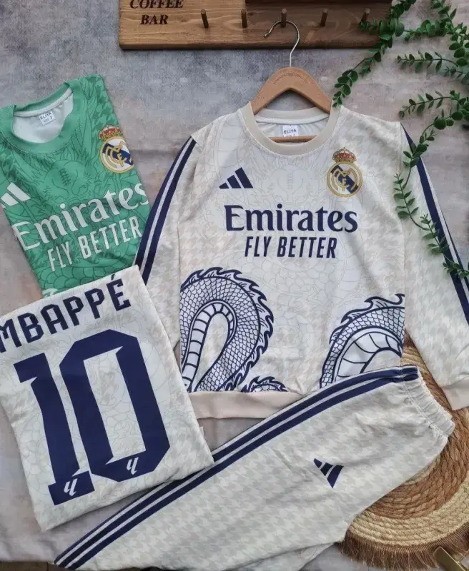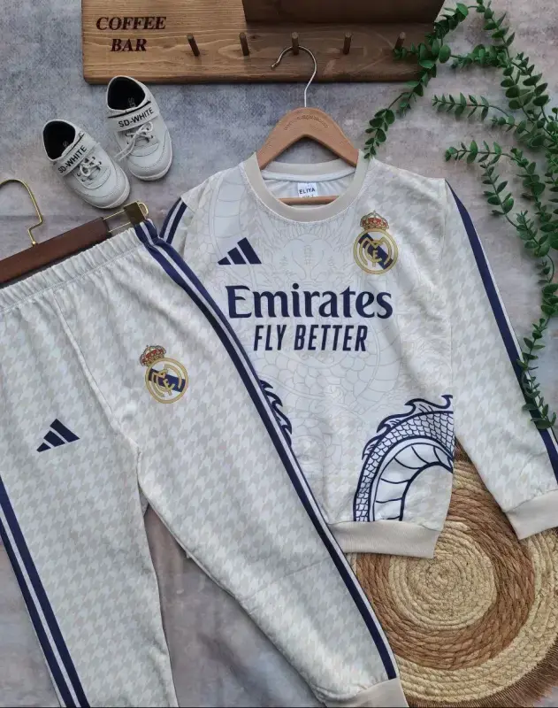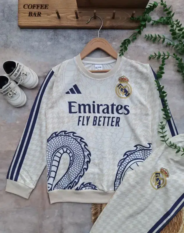 مجموعه جدید بلوز شلوار پسرانه با طرح جذاب رئال مادرید و الهام گرفته از طرح اژدها اماراتی، گزینهای ایدهآل برای عرضه در بوتیکها و فروشگاههای پوشاک شماست. این محصول با کیفیت بالا و طراحی منحصر به فرد، مورد توجه مشتریان جوان قرار خواهد گرفت.