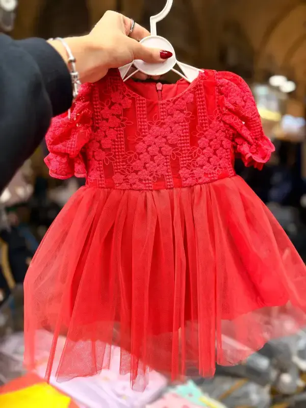 خرید عمده سارافون یلدایی دخترانه طرح گل مناسب 6 ماه تا 4 سال