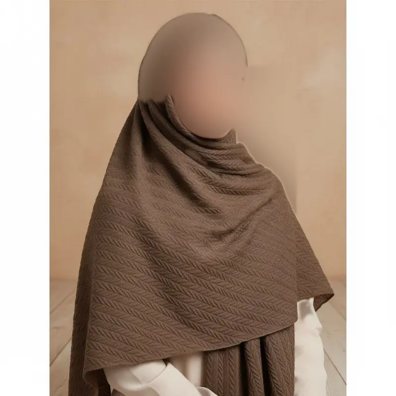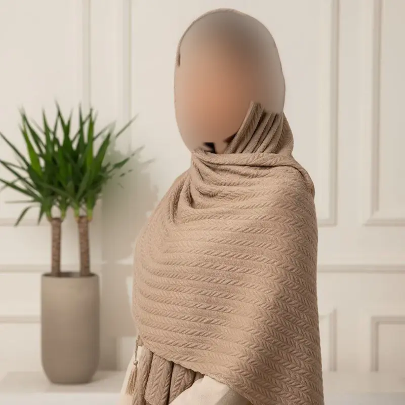خرید عمده روسری نخی پلیسه گندمی منگوله دار قواره 130