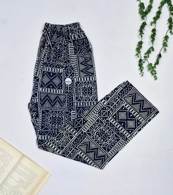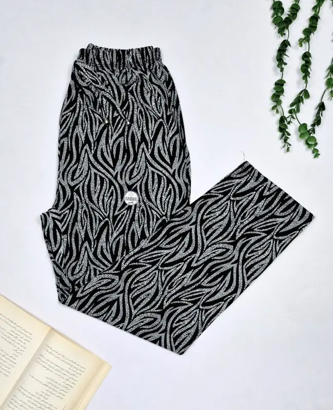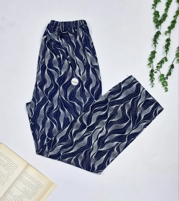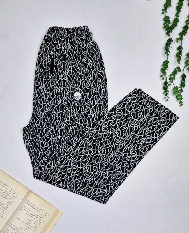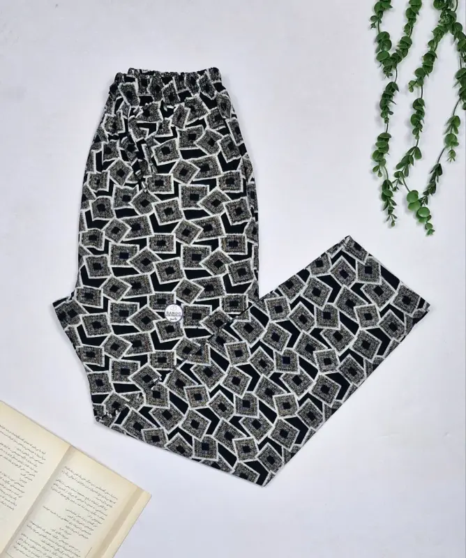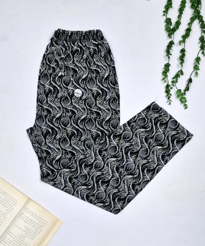 خرید عمده شلوار راحتی زنانه نخ پنبه ویسکوز گرم بالا قواره بزرگ طرح دار پک 12 عددی