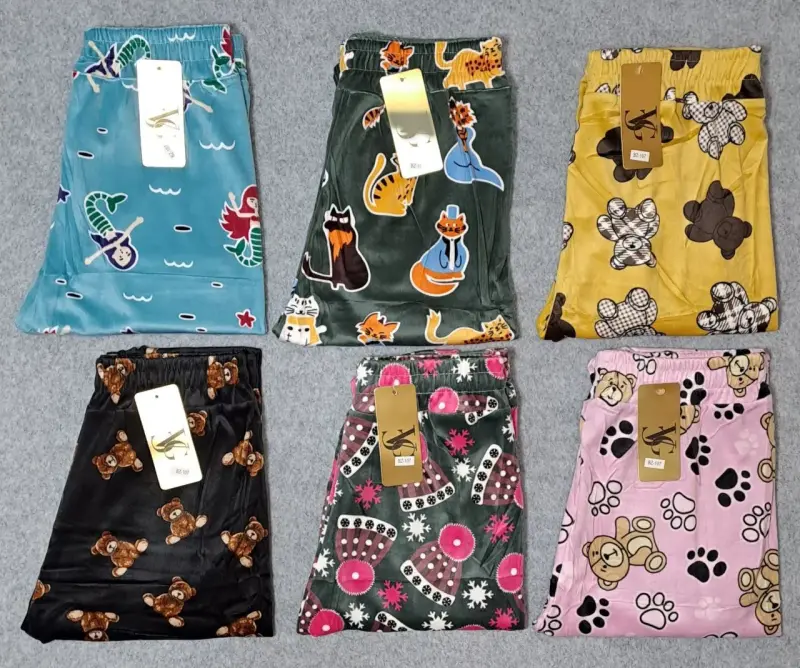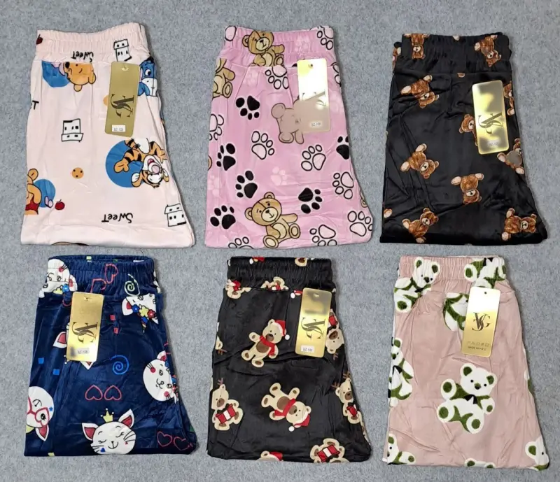 خرید عمده شلوار مخمل طرحدار عروسکی زنانه سایز بزرگ پک 6 تایی برند GVC