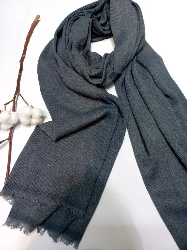 شال ساده زنانه برشکا پاییزه اورجینال طرح ریز لب ریش
