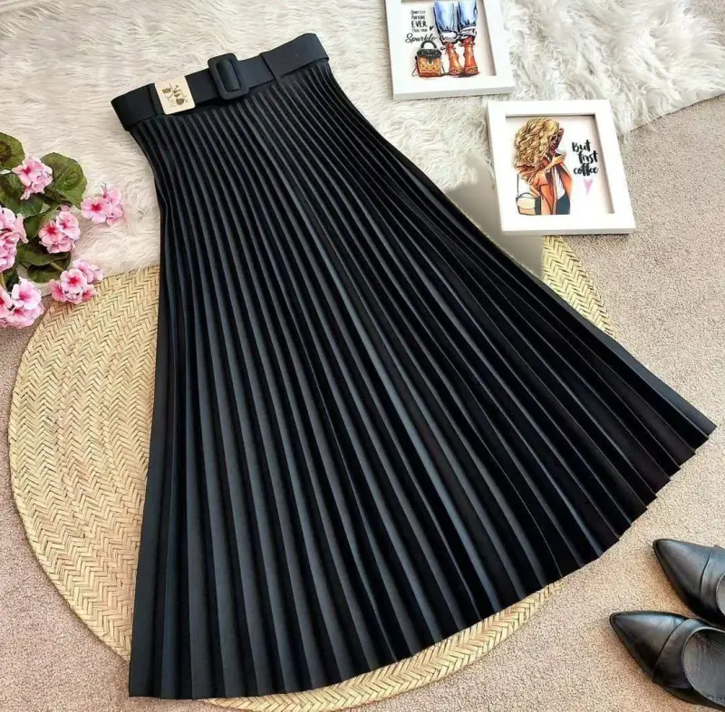 خرید عمده دامن پلیسه مازراتی زنانه همراه با کمربند