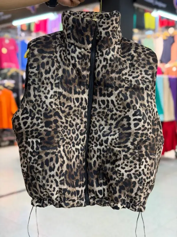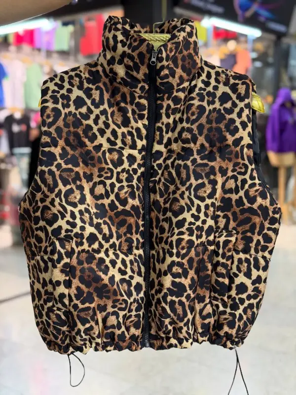 خرید عمده پافر گت دار نیم تنه طرح پلنگی کالکشن پاییزه