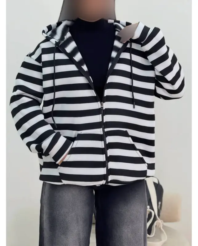 سویشرت راه راه با طراحی کلاسیک و جذاب، انتخابی ایدهآل برای تکمیل استایل روزمره شماست. این سویشرت با بافت داخلی کرکی، گرمای مطبوعی را در فصول سرد فراهم میکند و راحتی بینظیری را برای شما به ارمغان میآورد.