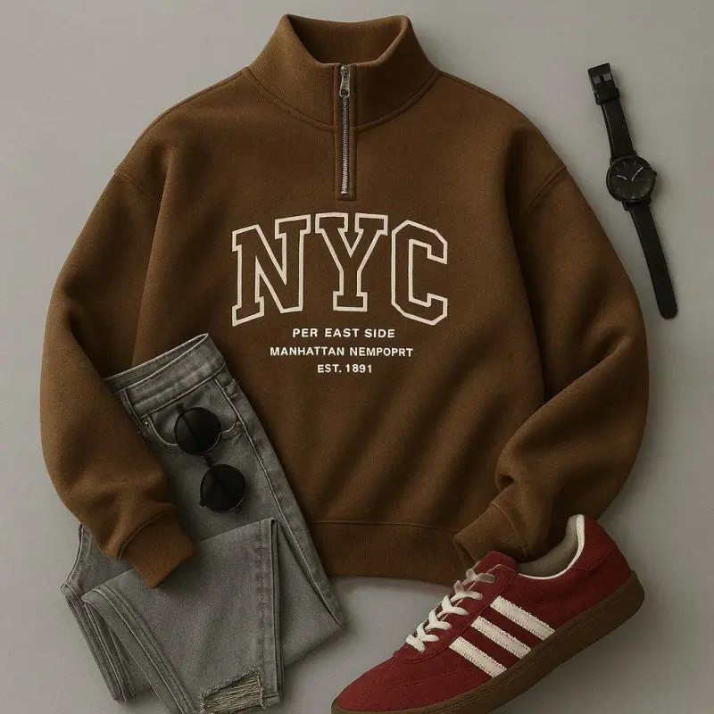 - طراحی: نیم زیپ با طرح الهام گرفته از NYC، ظاهری مدرن و شیک به محصول میبخشد.