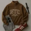 خرید عمده دورس نیم زیپ طرح NYC داخل کرکی فری سایز