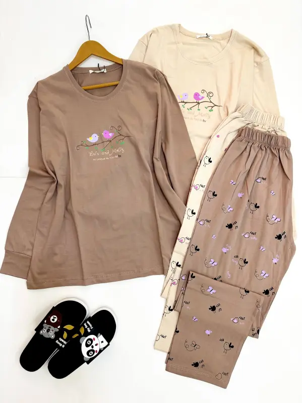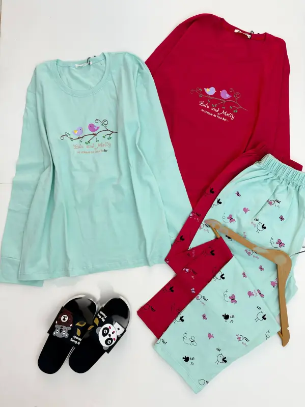 خرید عمده ست بلوز شلوار نخی زنانه طرح لولو و مولی