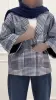 خرید عمده کالکشن جدید زنانه: کت چهارخانه پشمی یقه انگلیسی آستردار فری سایز