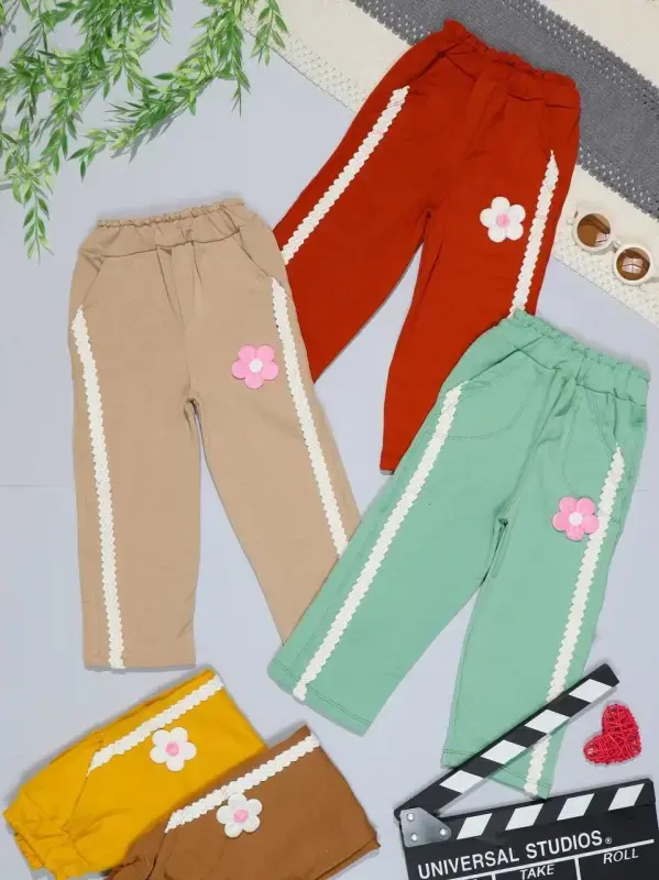 خرید عمده شلوار راحتی دخترانه گل برجسته کد 13254
