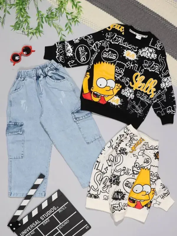 خرید عمده بلوز و شلوار پسرانه طرح باب اسفنجی جین سمپسون