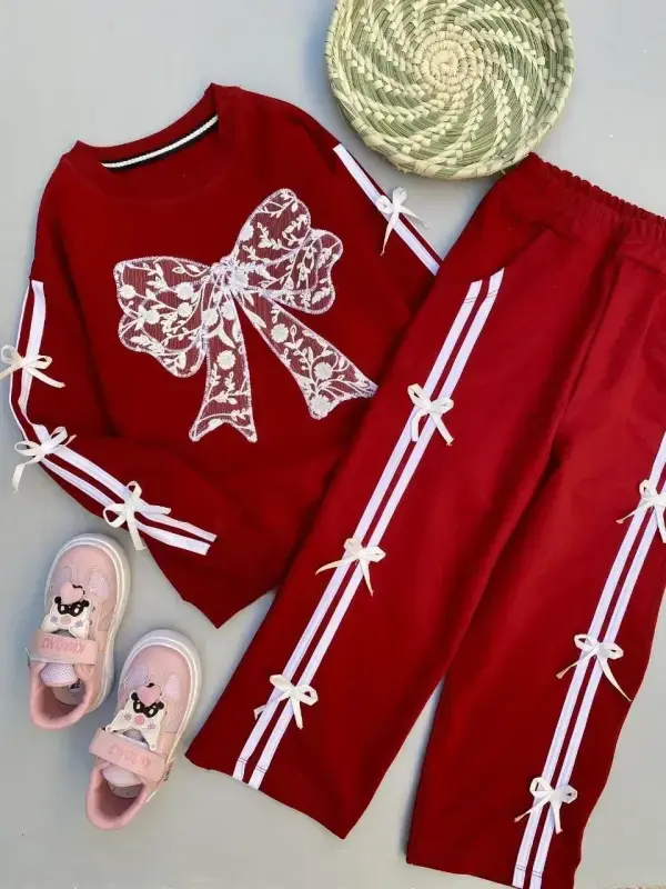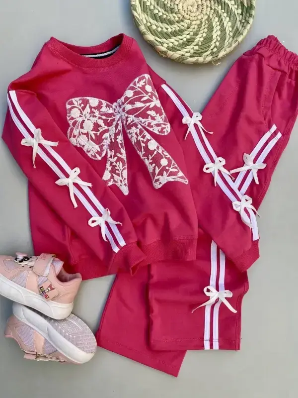 خرید عمده ست بلوز و شلوار دخترانه طرح پاپیون پاییزه