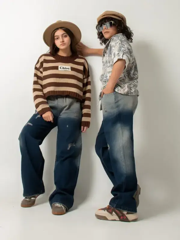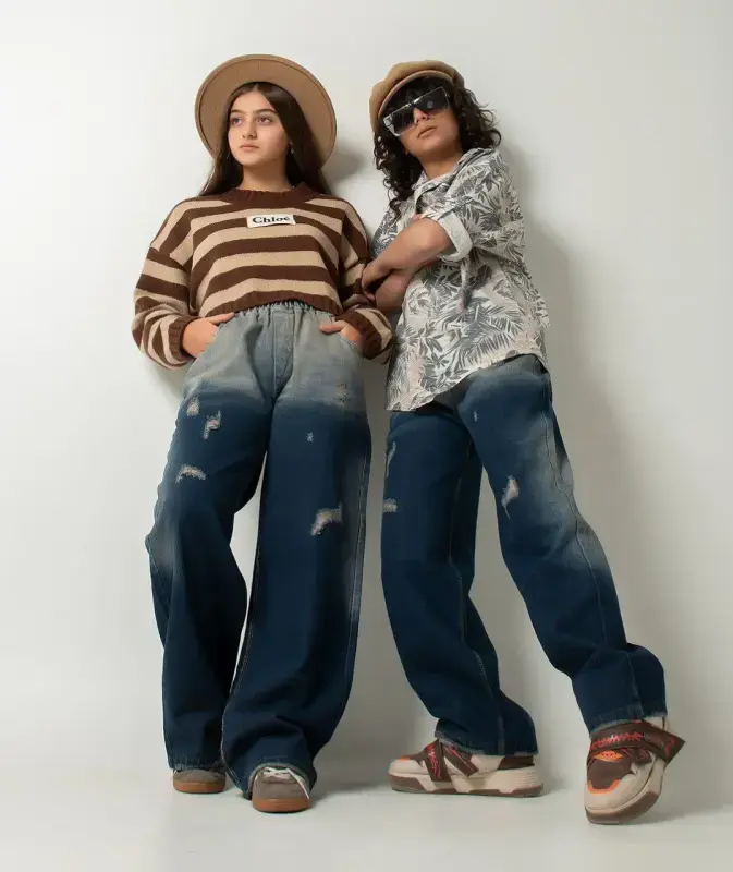 خرید عمده شلوار بگ تینت جین پنبه دخترانه و پسرانه مناسب 7 تا 16 سال