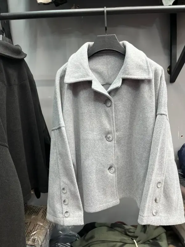 خرید عمده خرید کت فوتر کوبیده وارداتی زنانه پاییزه و زمستانه مدل یقه انگلیسی دکمه دار