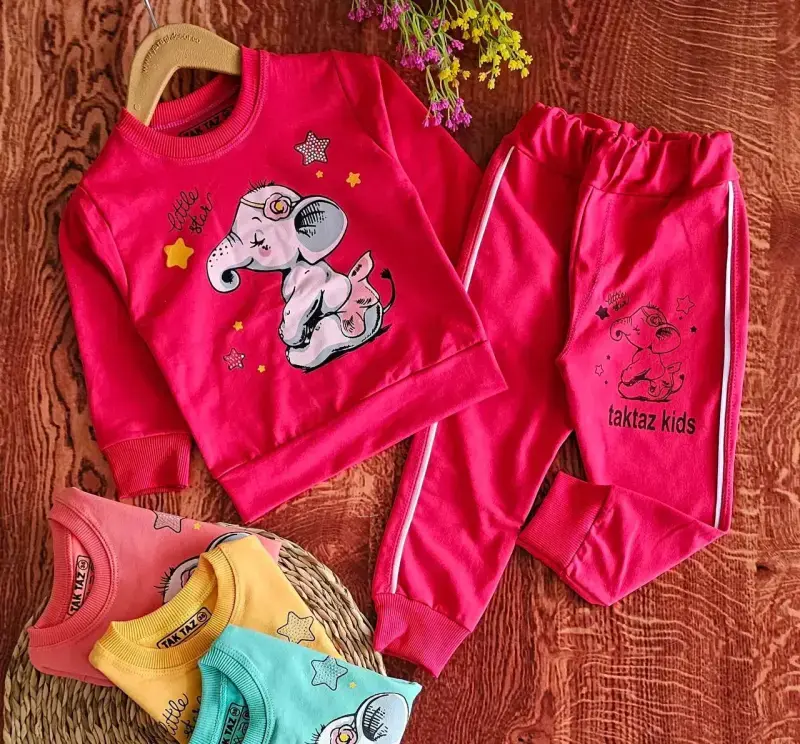 خرید عمده بلوز شلوار دخترانه طرح فیل "Little Star" تکتاز