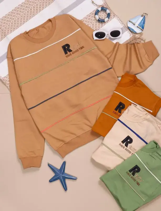 ارائه شده برای خرید عمده پوشاک، این بلوز پسرانه با کیفیت بالا و طرح جذاب "R Have Good Time" انتخابی ایدهآل برای بوتیکها و آنلاینشاپهای پوشاک است.