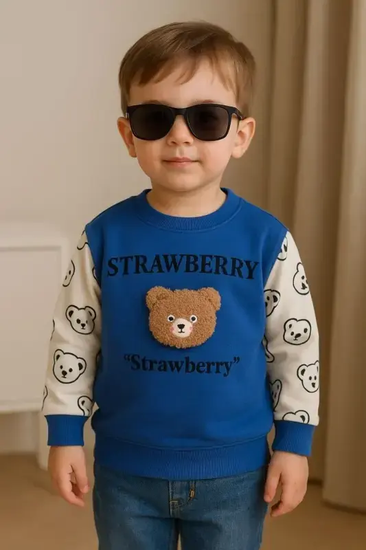 بلوز پسرانه طرح خرس برجسته و نوشته "Strawberry"