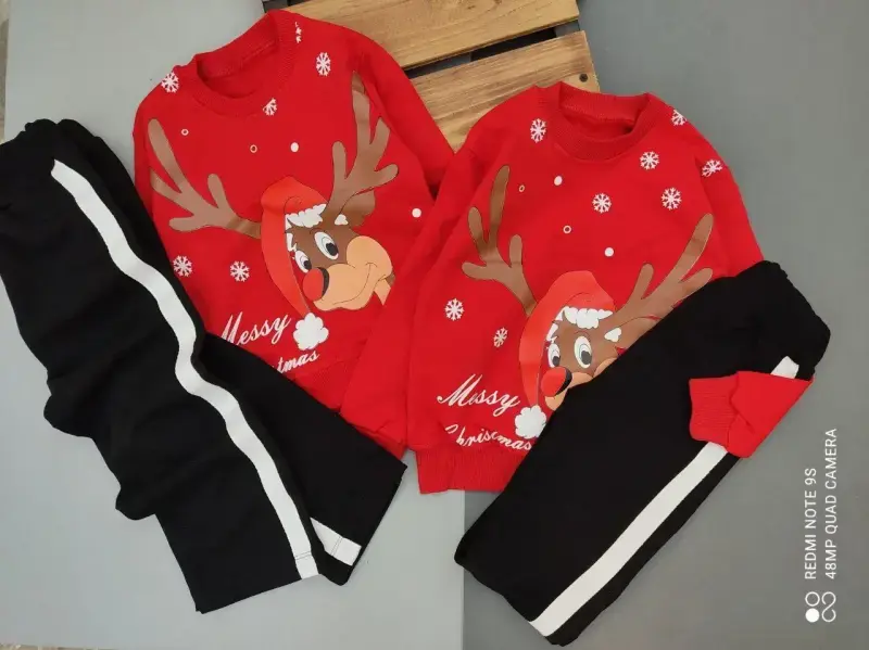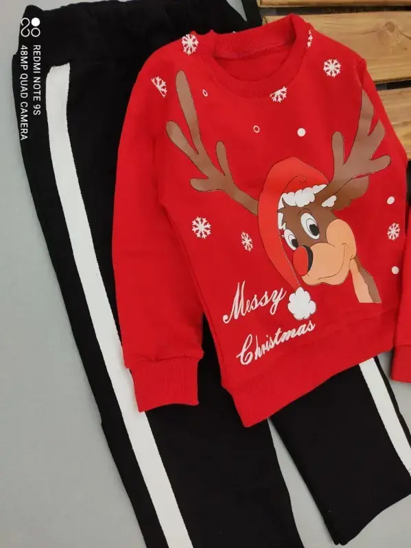 خرید عمده بلوز شلوار اسپرت طرح کریسمس بچگانه