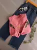خرید عمده بلوز شلوار دخترانه جین پاپیون کد 017