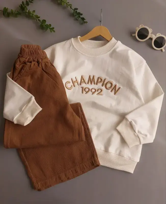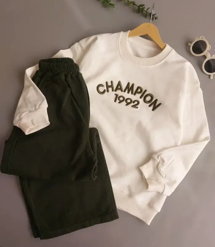 معرفی بلوز شلوار کتان پسرانه طرح Champion کد 017، گزینهای پرفروش و ایدهآل برای تکمیل مجموعه پوشاک بوتیک شما. این محصول با کیفیت، انتخابی مطمئن برای خرید عمده پوشاک پسرانه است.