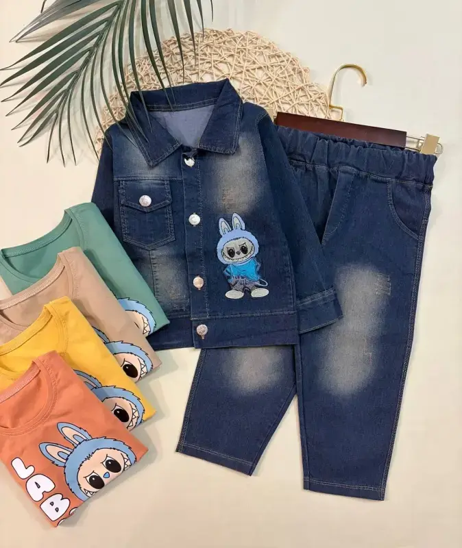 خرید عمده ست سه تیکه اسپرت بچگانه طرح خرگوش (بلوز، کت و شلوار لی)
