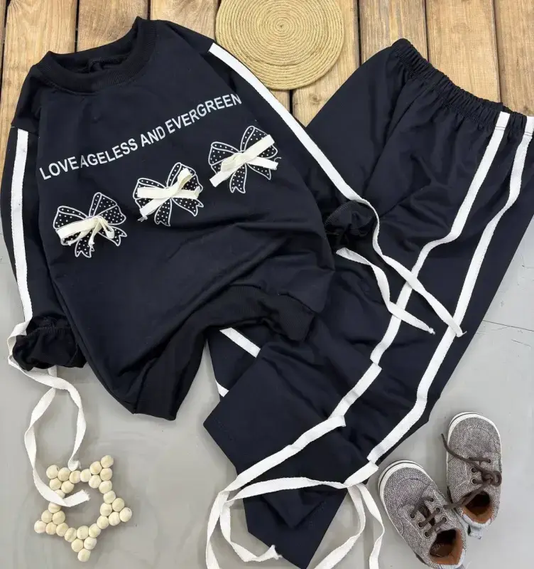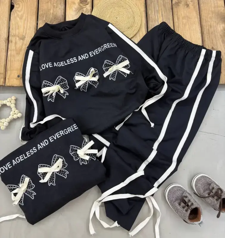 خرید عمده ست بلوز شلوار دخترانه طرح پاپیون کد 157