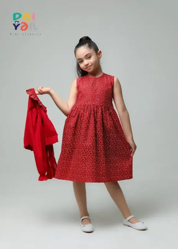 این ست لباس مجلسی دخترانه با طرح خالدار قرمز، انتخابی ایدهآل برای مغازهداران و بوتیکداران است که به دنبال خرید عمده پوشاک با کیفیت برای رده سنی 7 تا 13 سال هستند.