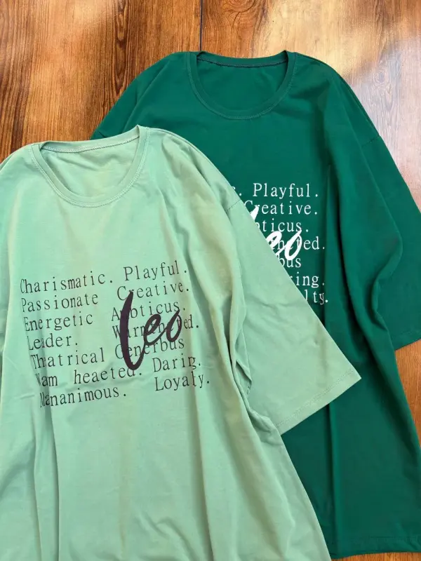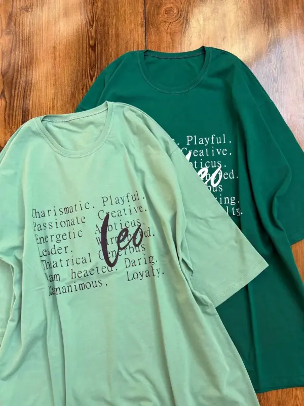 تیشرت لانگ نخی پنبه طرح Leo فری سایز زنانه