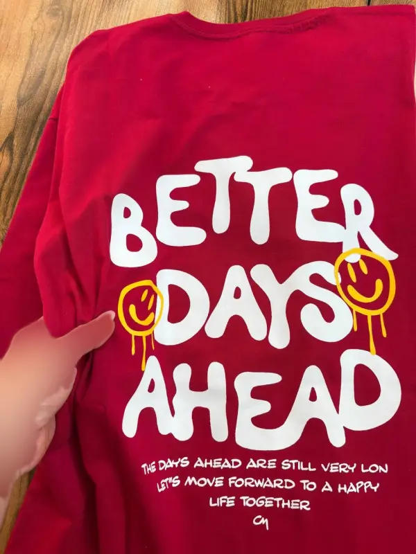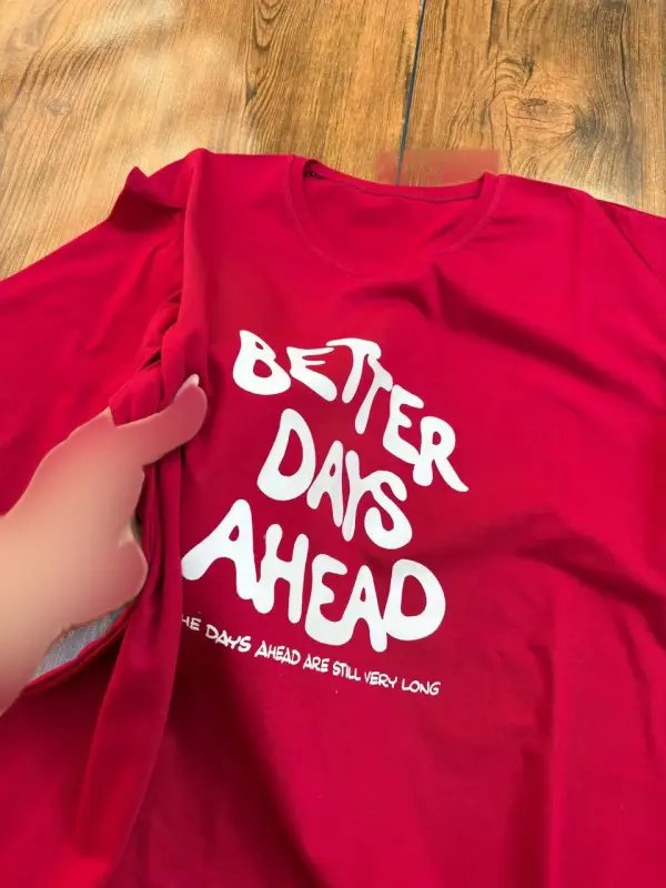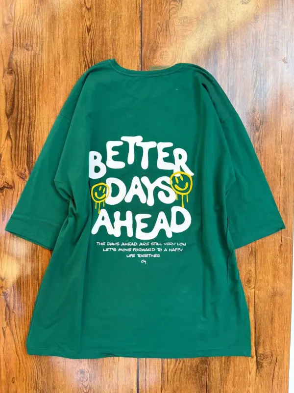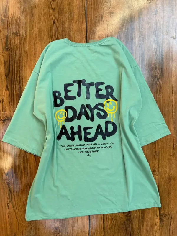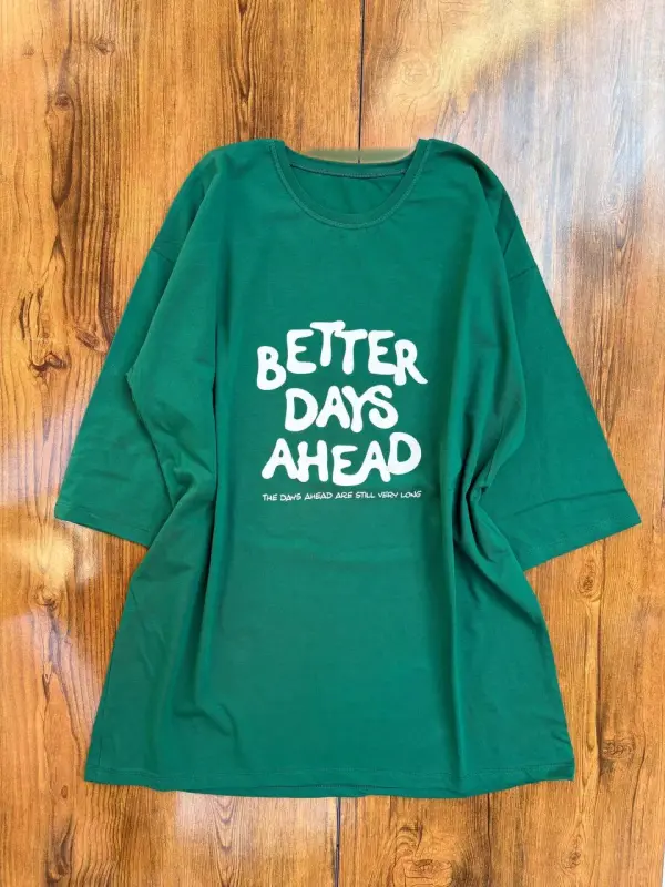 تیشرت لانگ نخی پنبه طرح Better Days Ahead