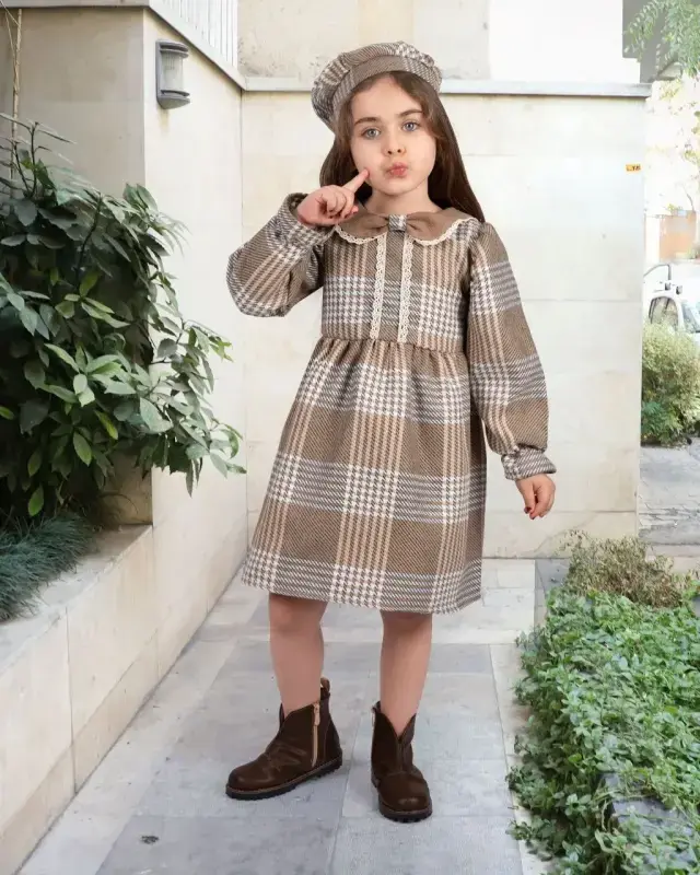 این پیراهن چهارخونه دخترانه با جزئیات زیبای گیپور در قسمت جلو، انتخابی شیک و دوستداشتنی برای کودکان شماست. این محصول مناسب برای سنین 3 الی 6 سال طراحی شده است.