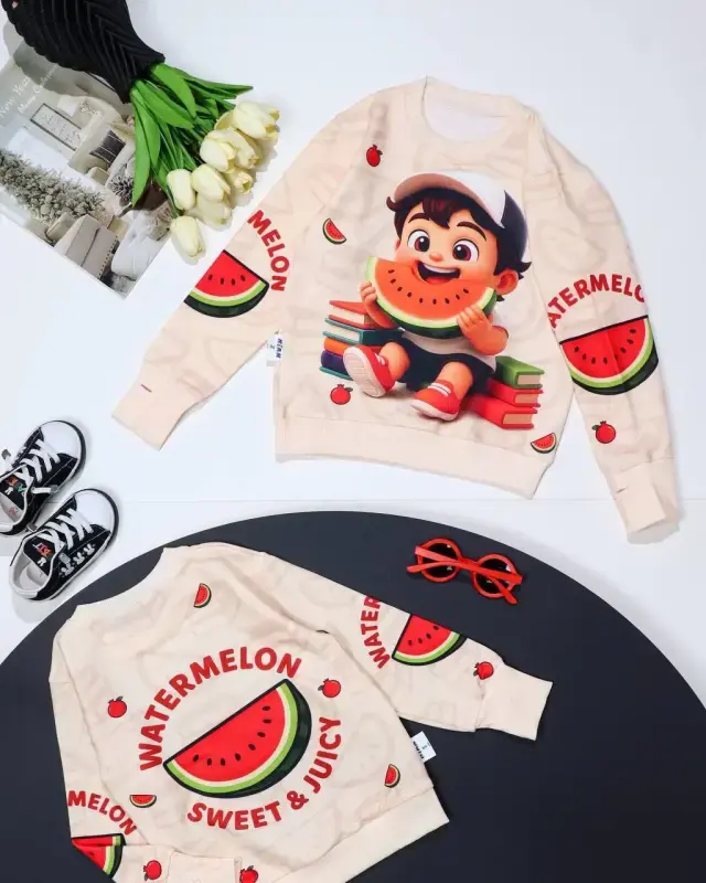 خرید عمده بلوز پسرانه طرح یلدایی با طرح هندوانه و نوشته