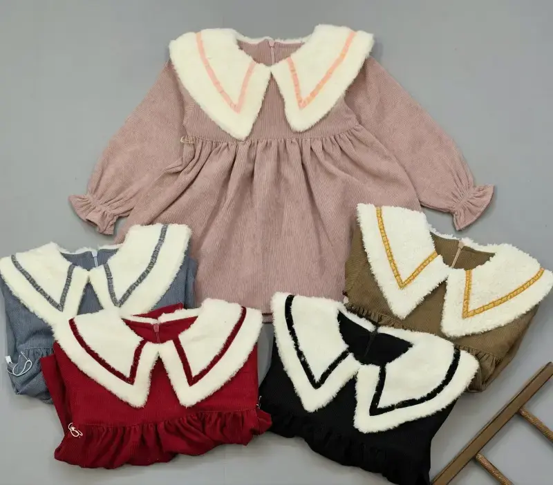 خرید عمده سارافون دخترانه مخمل یقه خزدار رنگی سایز 40 تا 55