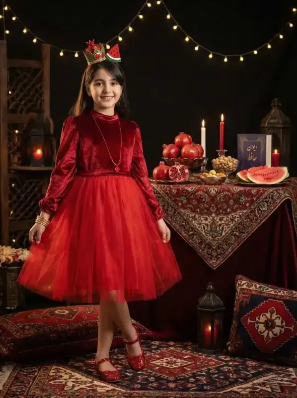 پیراهن مخمل و تور یلدایی دخترانه