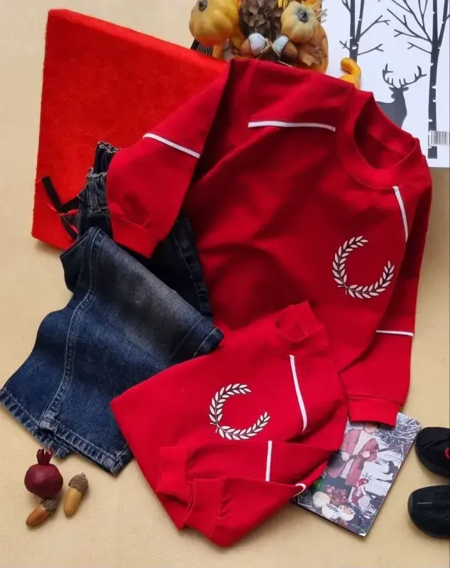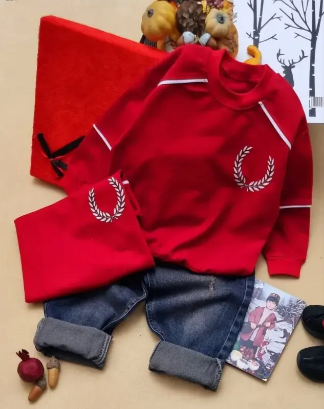 خرید عمده بلوز تک یلدایی پسرانه و دخترانه طرح برگ laurel