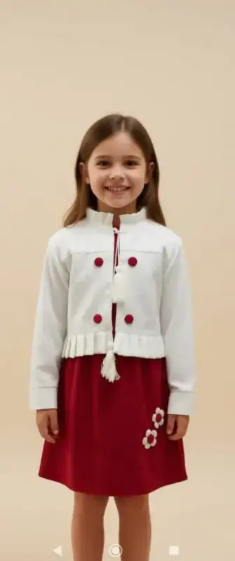 این ست شامل یک کت و یک سارافون با طرح گل زیبا است که برای دختران در بازه سنی 4 تا 8 سال طراحی شده است.