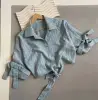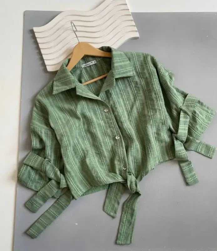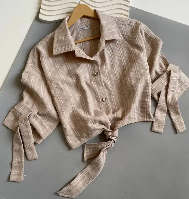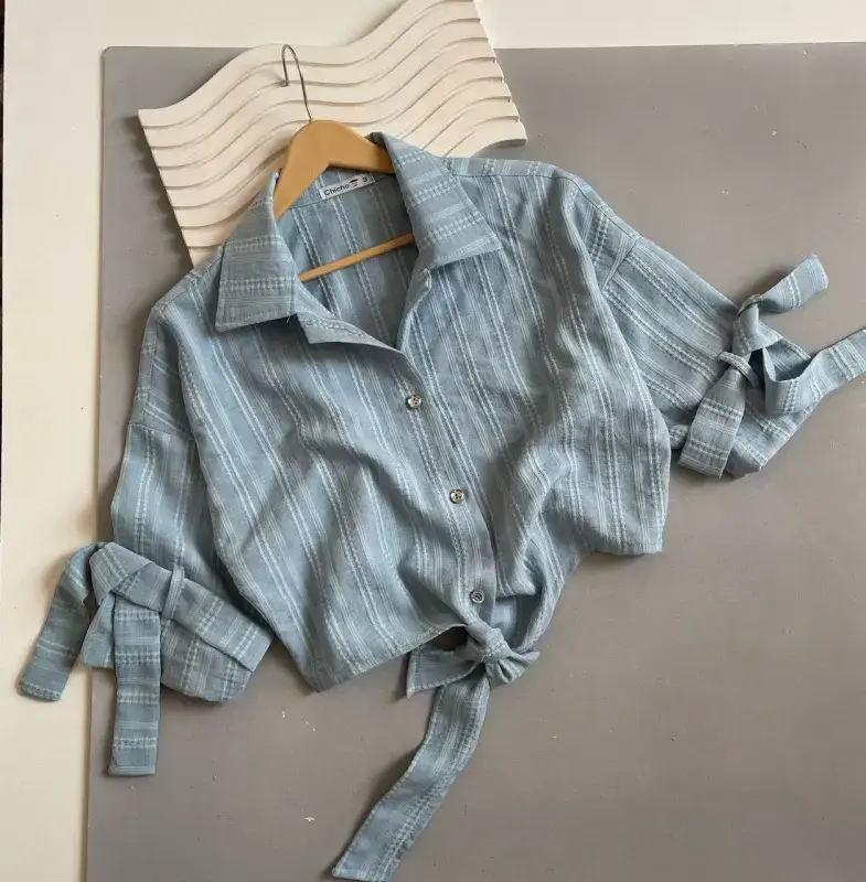 خرید عمده شومیز بچگانه جنس شانتون مدل جلو گره ای