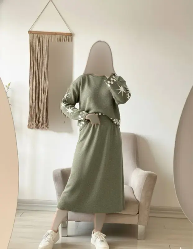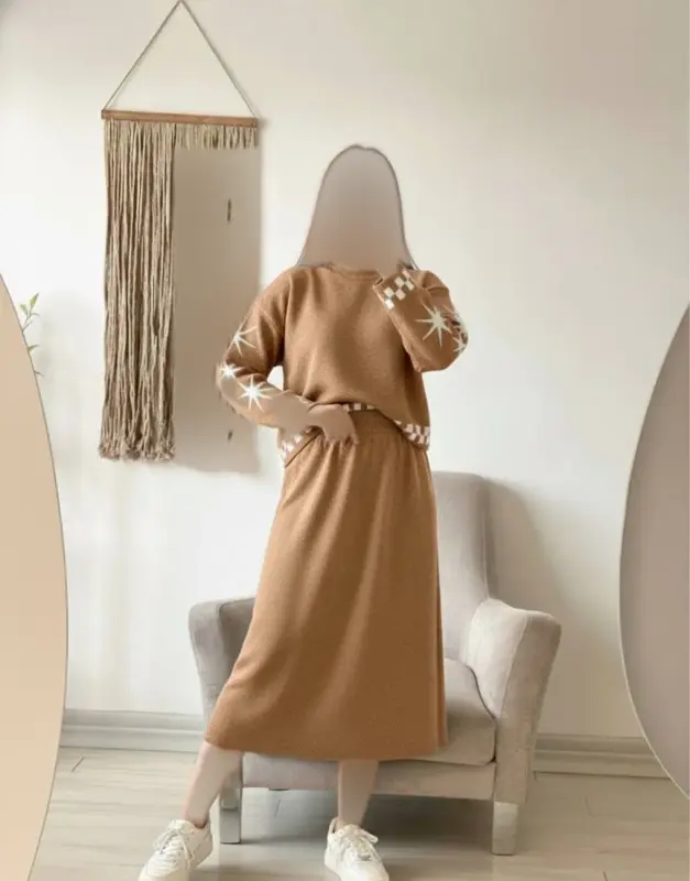ست بلوز و دامن بافتنی زنانه طرح ستاره و شطرنجی