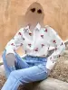 خرید عمده شومیز زنانه طرح آلبالو یلدایی فری سایز