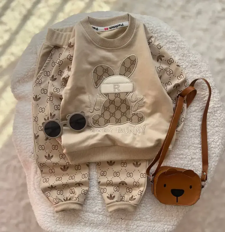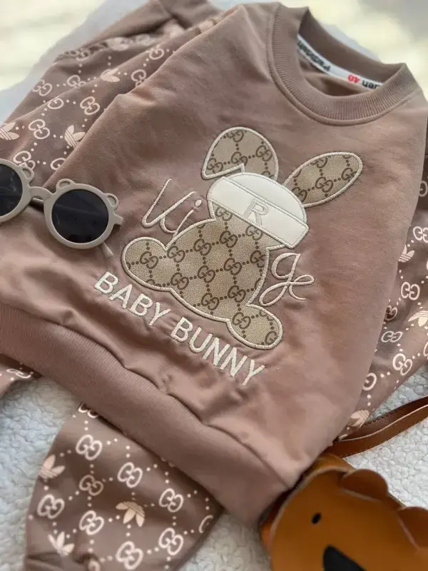 ست سوییشرت و شلوار بچگانه طرح خرگوش و لوگوی GG