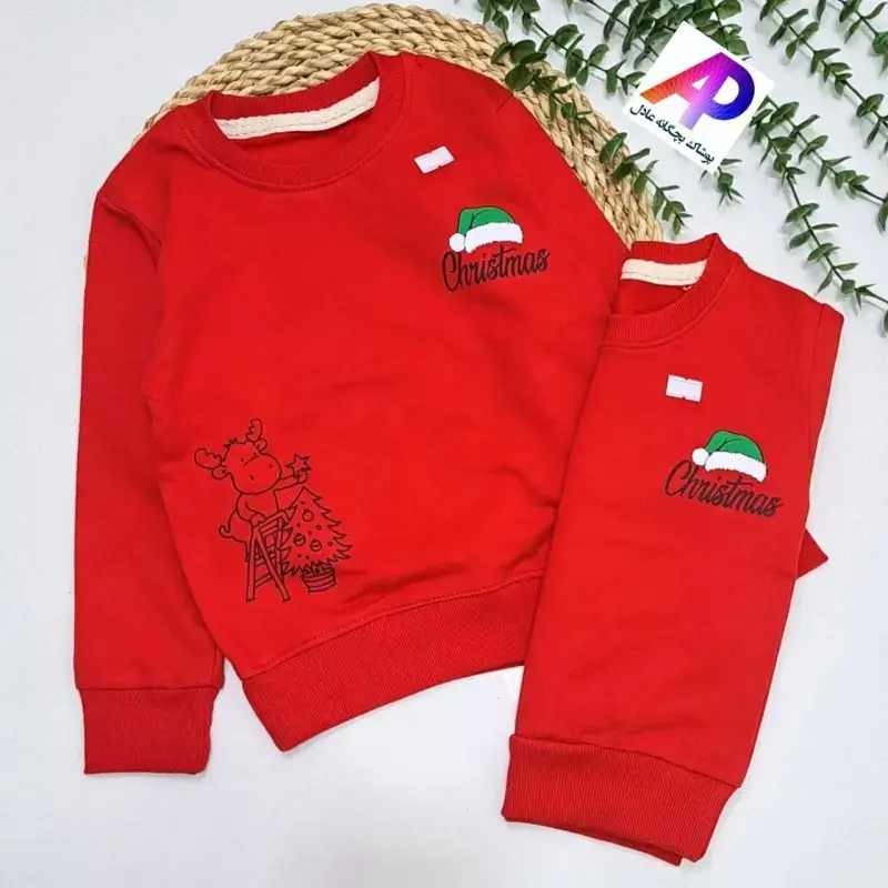 خرید عمده بلوز تک یلدایی پسرانه و دخترانه طرح کریسمس جنس پنبه دورس