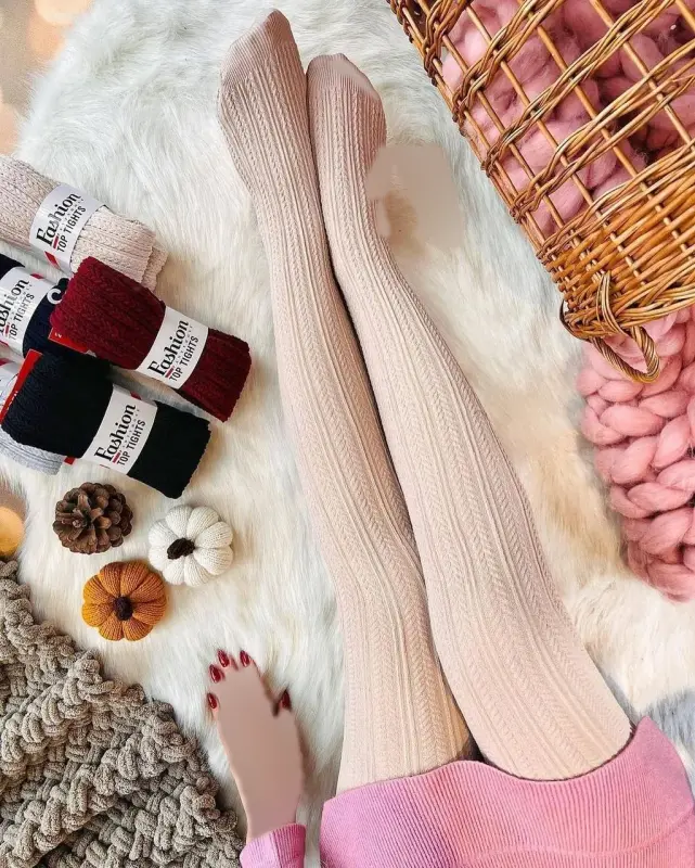 جوراب شلواری بافتنی گندمی اعلا - فری سایز در 18 رنگ