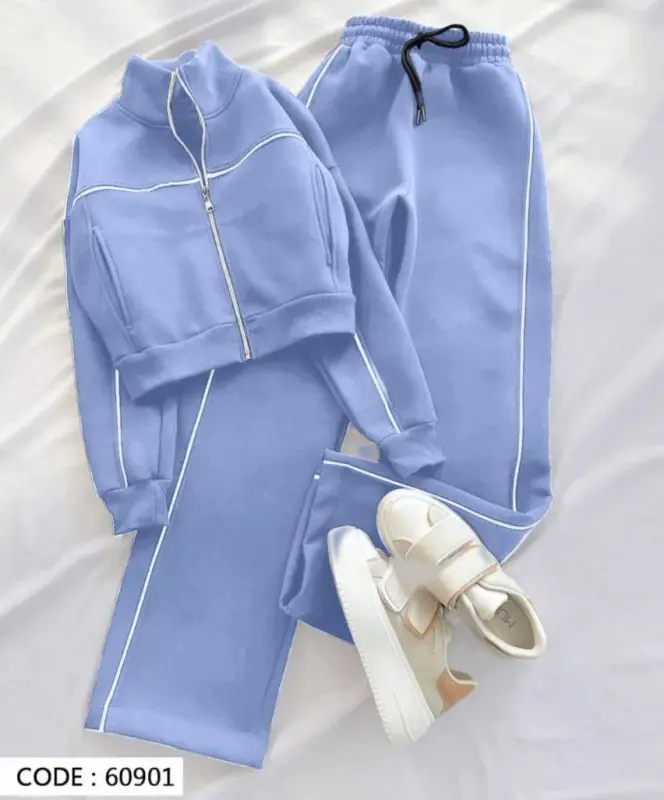 - طراحی: سویشرت و شلوار با جزئیات مغزی دوزی شده.