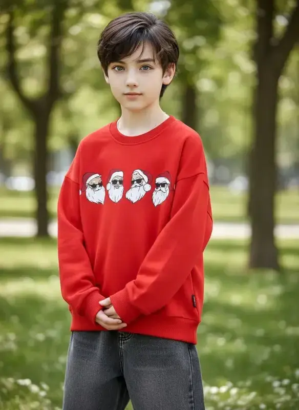 خرید عمده بلوز تک یلدایی اسپرت پسرانه و دخترانه طرح بابانوئل