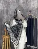 خرید عمده شال نخی بلک وایت منگوله دار طرح گوچی و شنل سایز 75×195