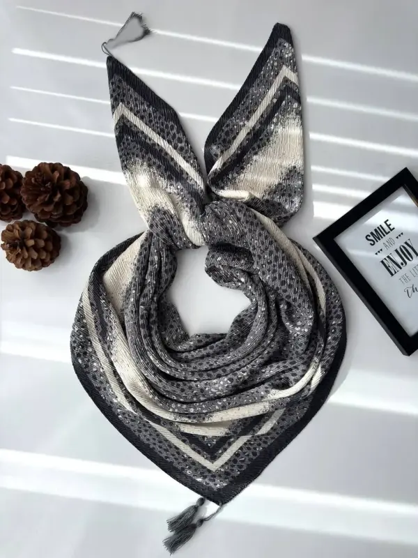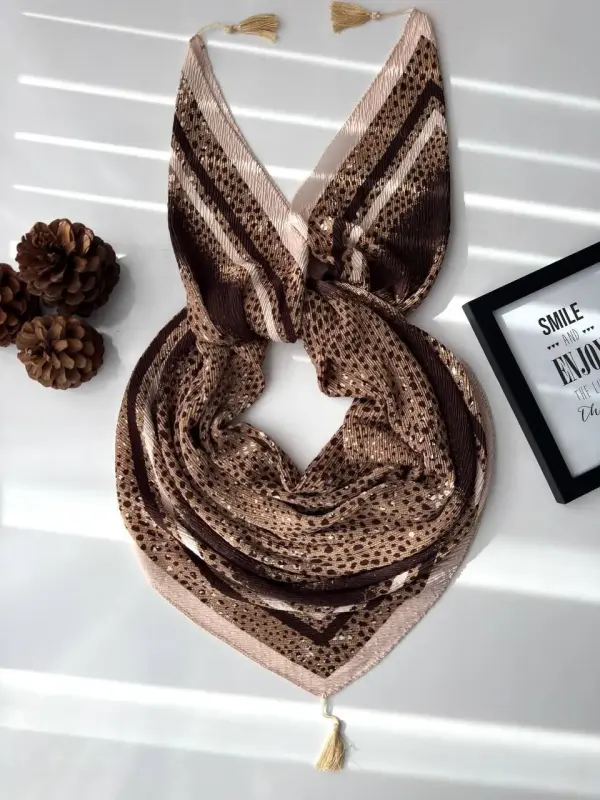 روسری نخی پلیسه زنانه طرح دار