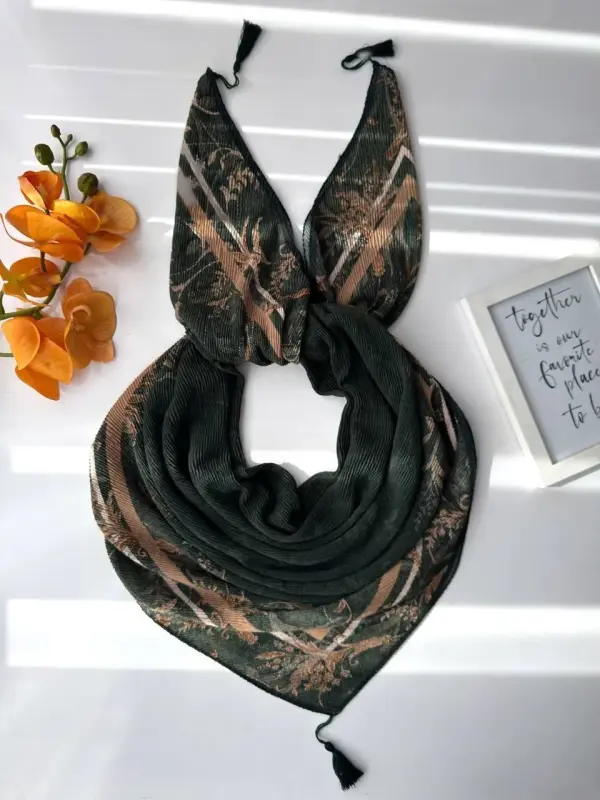 روسری نخی پلیسه طرحدار