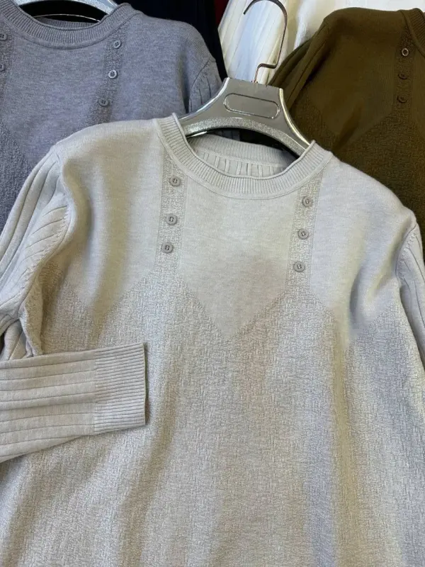 بافت یقه گرد زنانه طرح کبریتی با دکمه تزئینی
