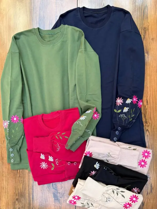خرید عمده بلوز دورس زنانه گلدوزی شده آستین دکمه دار