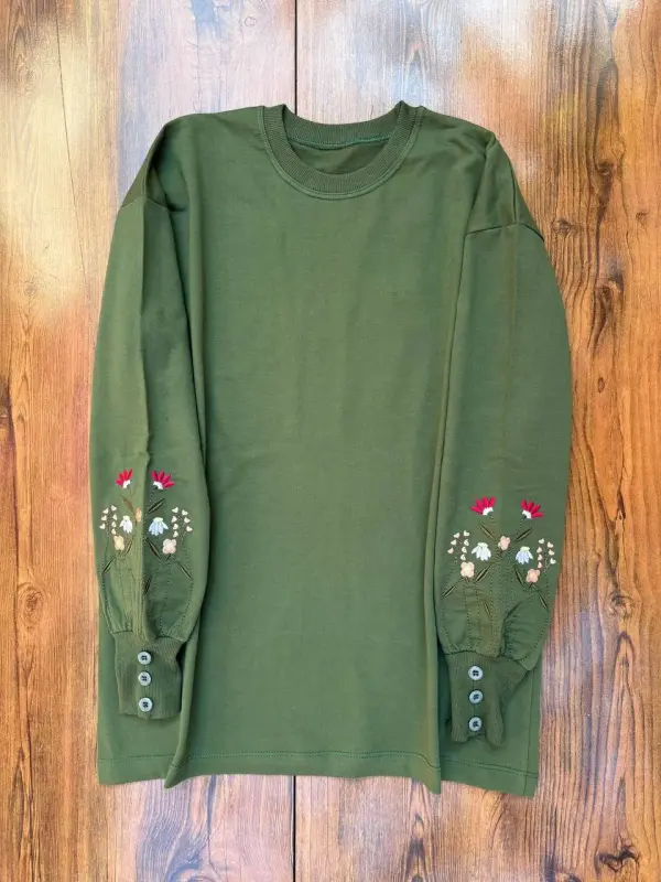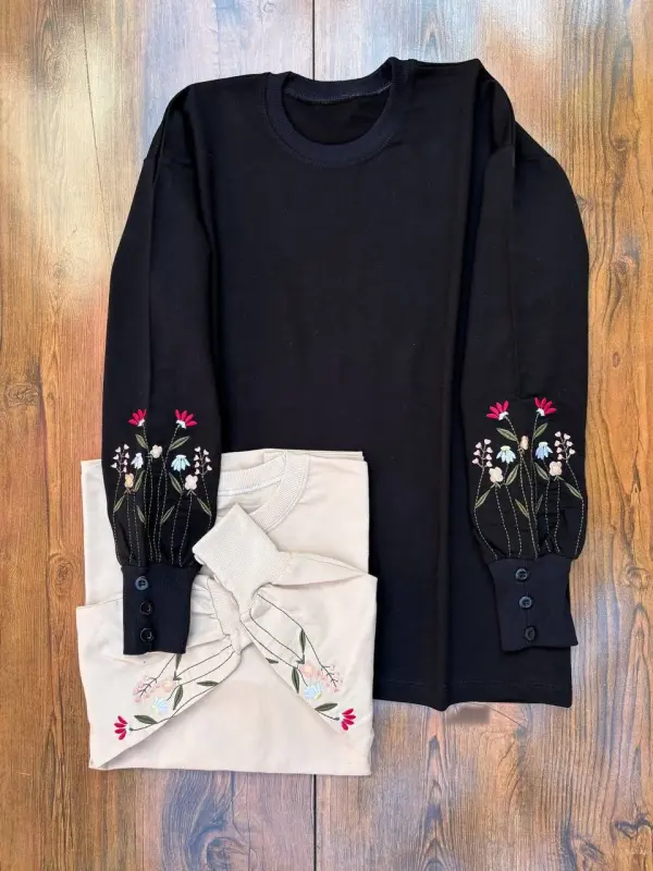 - طراحی آستین: آستینهای گلدوزی شده با جزئیات ظریف و دکمهدار برای استایلی منحصر به فرد.