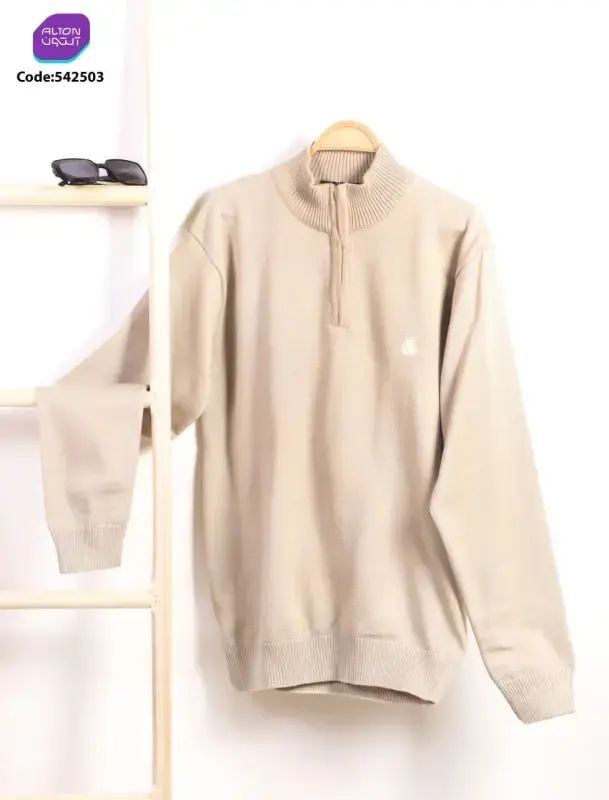 خرید عمده بلوز بافت مردانه یقه ایستاده نیم زیپ کد 542503